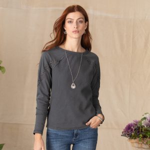 Subtle details make this allover rib sweater so special. with a hand-crocheted yoke and picot trim at V-neckline. Recycled wool/merino wool/cotton/nylon. Hand wash. Imported. Exclusive. Sizes XS (0?C2). S (4?C6). M (8?C10). L (12?C14). XL (16?C18). XXL (20?C22). Approx. 22l.