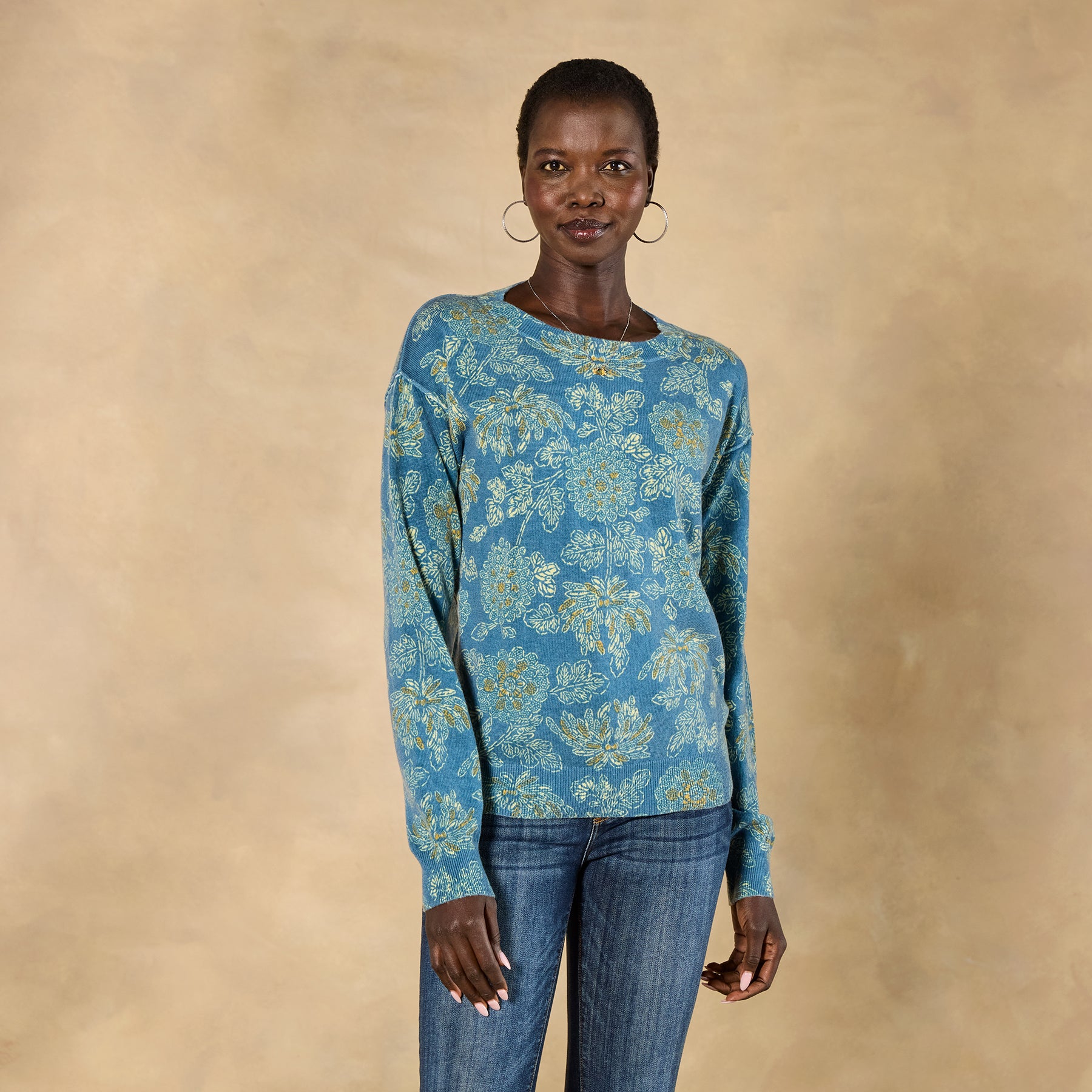 As soft and cozy as can be. our floral printed sweater is one you’ll reach for time and again. Rib trim. Acrylic/nylon/wool. Hand wash. Imported. Exclusive. Sizes XS (0?C2). S (4?C6). M (8?C10). L (12?C14). XL (16?C18). XXL (20?C22). Approx. 22l.