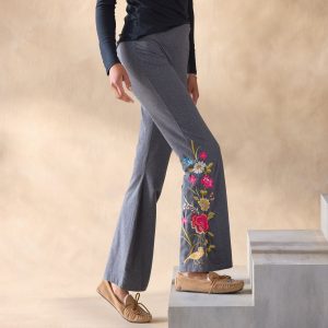 The most flattering and comfortable leggings you’ll own. with floral and avian inspired embroidery on the lower legs and stylish flared hem. Elastic waist. Cotton/spandex. Machine wash. Imported. Sundance exclusive. Sizes XXS (00). XS (0-2). S (4-6). M (8-10). L (12-14). XL (16-18). 29.5 inseam.