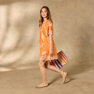 Our cute. casual Imperia Cover-Up is here to take you from cabana to cocktail hour and beyond. All-over embroidery and scalloped details elevate this easy popover; notch neck with beaded tie. Cotton. Machine wash. Imported. Exclusive. Sizes XXS (00). XS (0?C2). S (4?C6). M (8?C10). L (12?C14). XL (16?C18). Approx. 31.5l.
