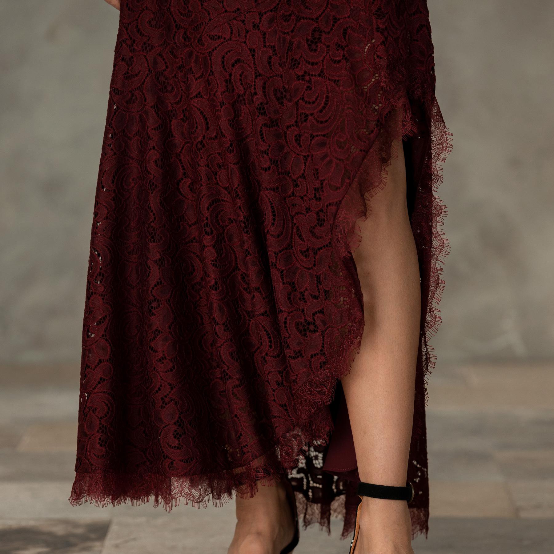 A subtle asymmetrical front draws the eye from the fitted waist to the flounce hem. Side zipper. fully lined. Nylon/spandex. Hand wash. Imported. Sizes XS (0-2). S (4-6). M (8-10). L (12-14). XL (16-18). XXL (20-22). Approx. 36l.