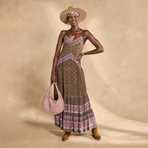 With a name that means supreme leader. our Naidu maxi is destined to become queen of your closet. A flattering V-neck graces the covered-button bodice. while all-over floral and border prints cast the perfect bohemian vibe. Adjustable straps. side-seam pockets. side zipper and full lining. Viscose. Machine wash. Imported. Exclusive. Sizes XXS (00). XS (0?C2). S (4?C6). M (8?C10). L (12?C14). XL (16?C18). Approx. 49.75l.