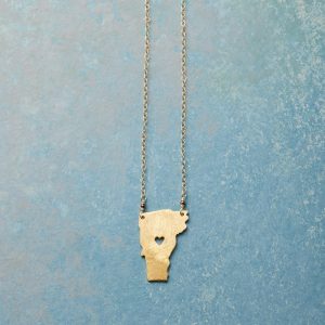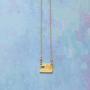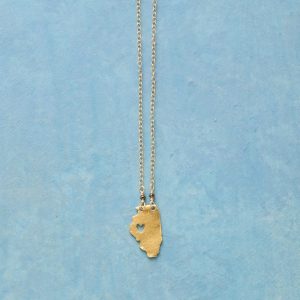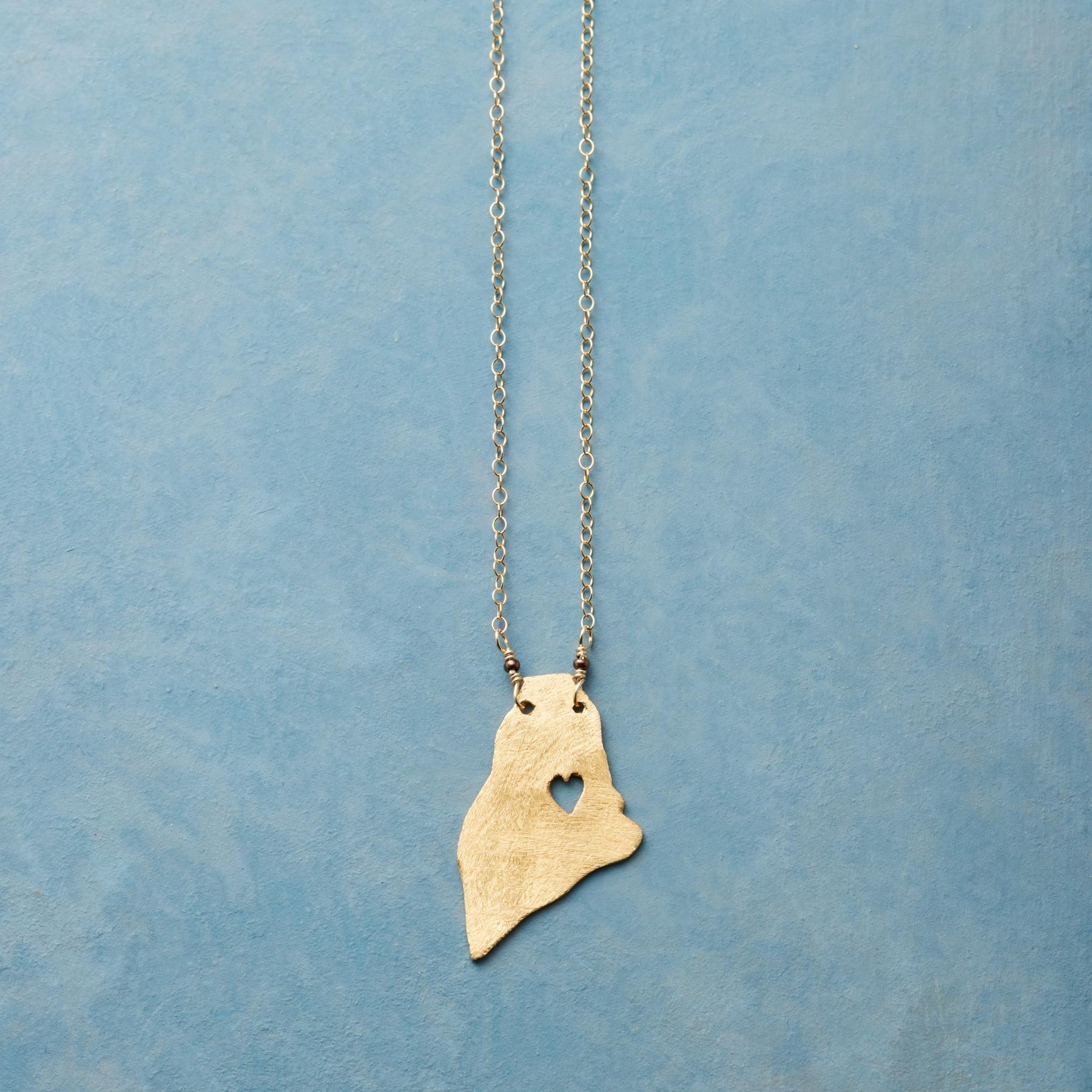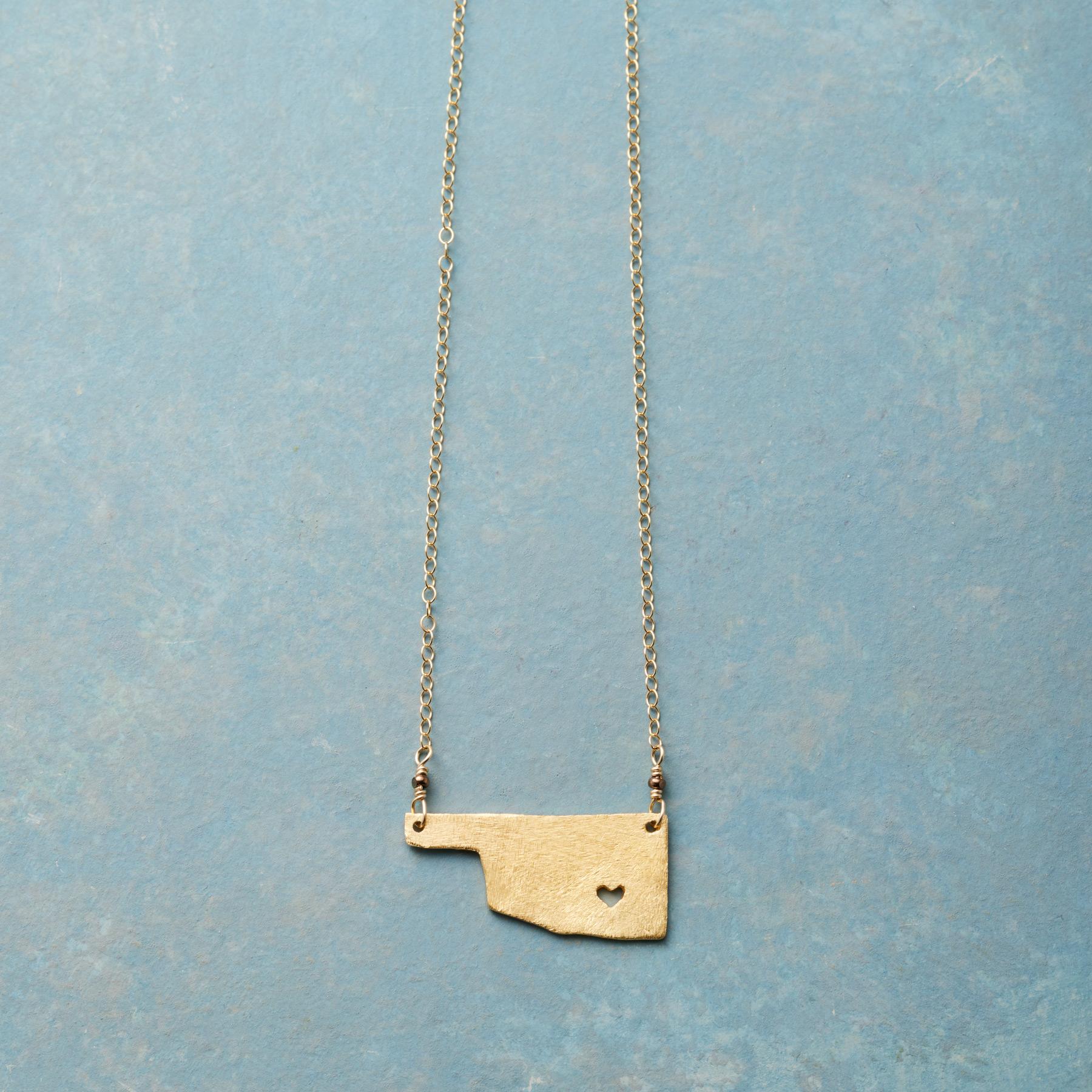 Celebrate your favorite state with our 18kt gold-plated charm strung on a 14kt gold-filled chain. A cut-out heart shows your love. Lobster clasp. Handcrafted. Exclusive. 17-18l