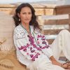 This crewneck tee boasts all-over embroidery on the front. back and sleeves. Cotton. Machine wash. Imported. Sizes XS (0–2). S (4–6). M (8–10). L (12–14). XL (16–18). XXL (20–22). Approx. 26l.